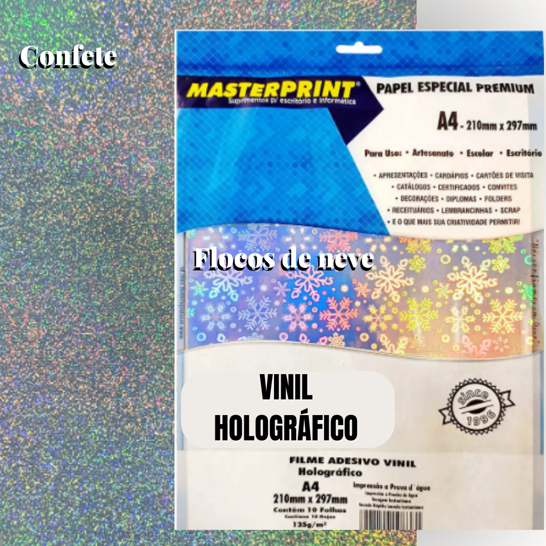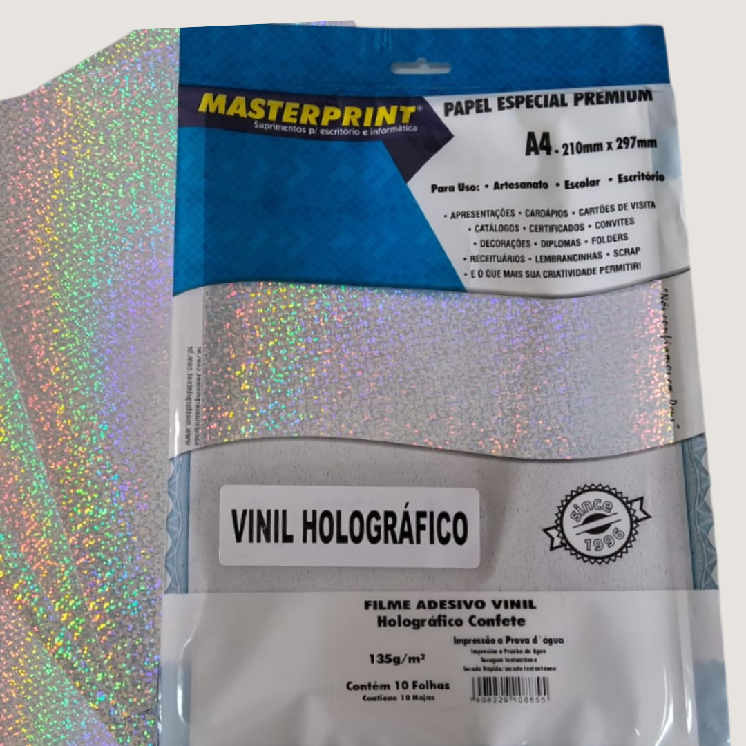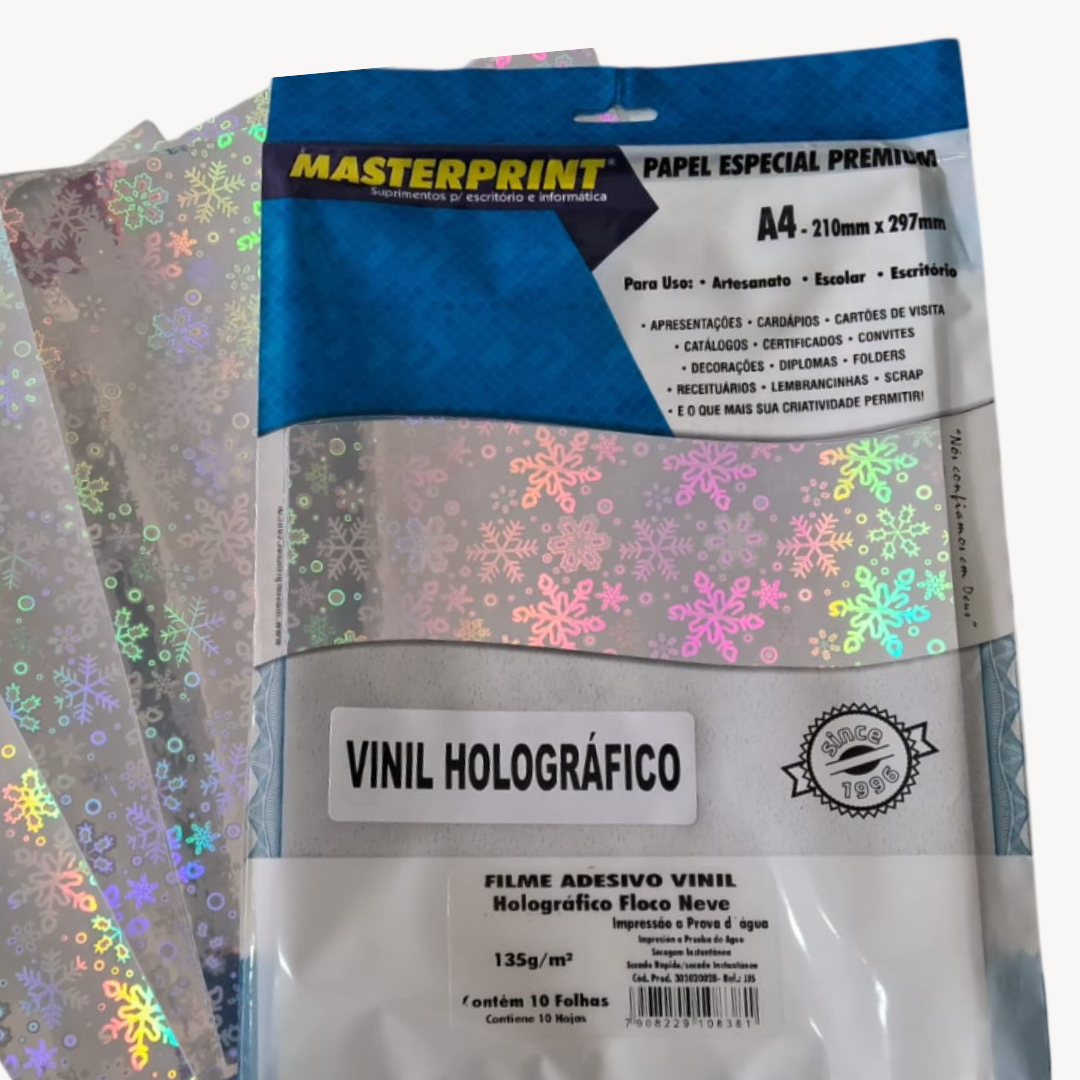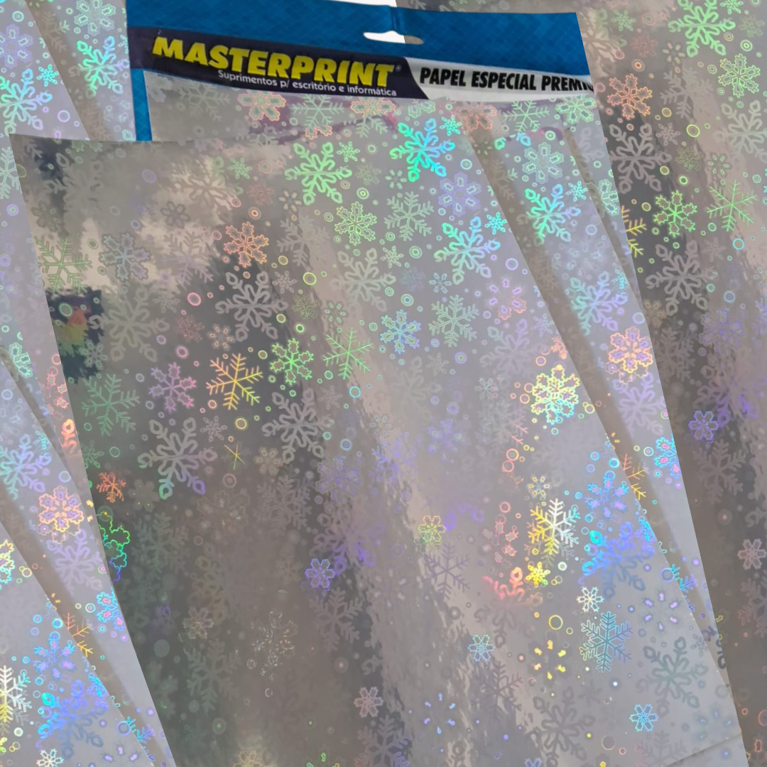 O filme adesivo vinil holográfico A4 135g é ideal para quem deseja criar adesivos personalizados com efeito brilhante e acabamento premium. Com visual moderno e reflexo holográfico que muda conforme a luz, é perfeito para Natal, festas, promoções sazonais, rótulos e embalagens especiais.